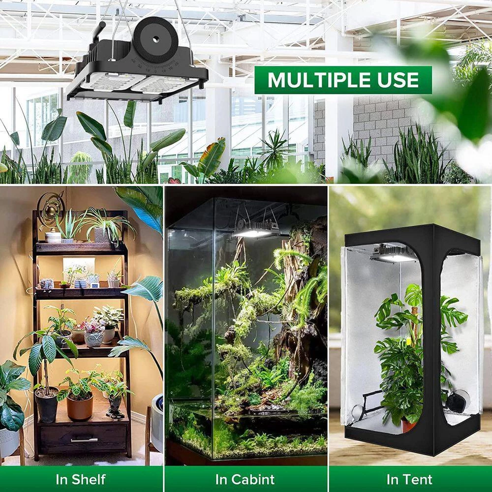 Imitate The Solar Spectrum: Actualize a more ideal full life cycle full spectrum supplementary light program, covering the entire visible spectrum of 400nm-780nm, suitable for every cycle of plant growth, effectively promotes plant growth and improves crop yield and quality. Providing 4000K daylight, Ra is close to 100, infinitely close to natural light. The Secondary Optical Design: PPF: 103 μmol/s, PPFD: 350.3 μmol/s/㎡@1 ft. Through the lens for secondary scientific light distribution, improves light utilization, giving plants more supplementary light. Using only 70-Watt of power, equivalent to 700-Watt incandescent bulbs.