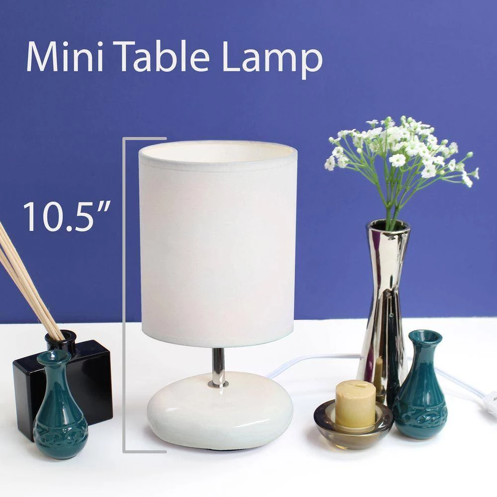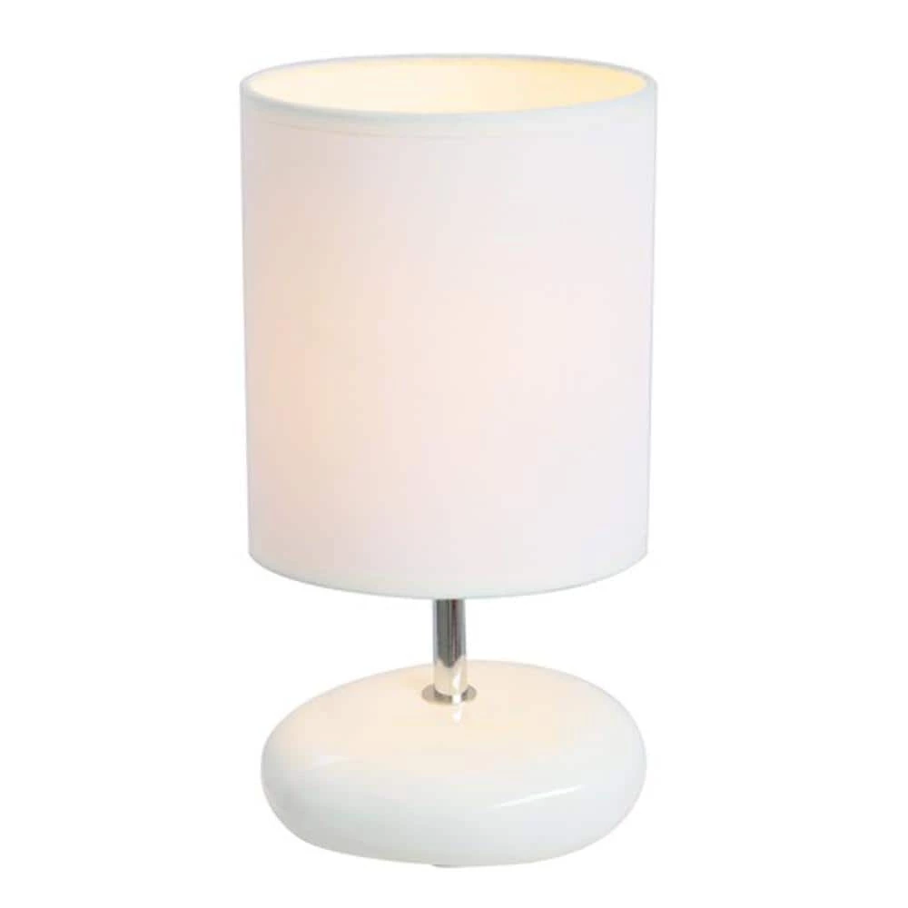 A fun, inexpensive, and practical table lamp to meet your basic fashion lighting needs. This small lamp features a stone shaped ceramic base and matching fabric shade. The compact size of this lamp makes it the perfect bedside counterpart.