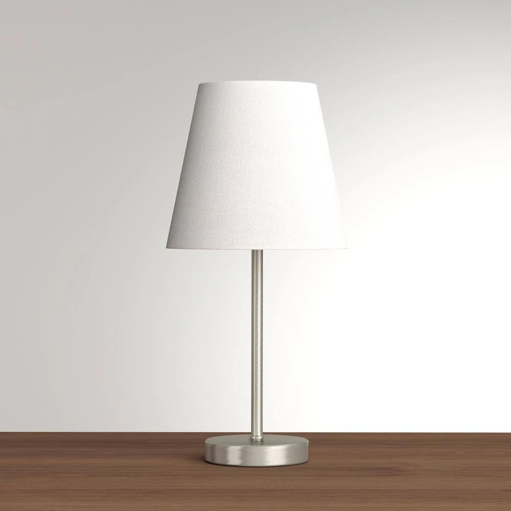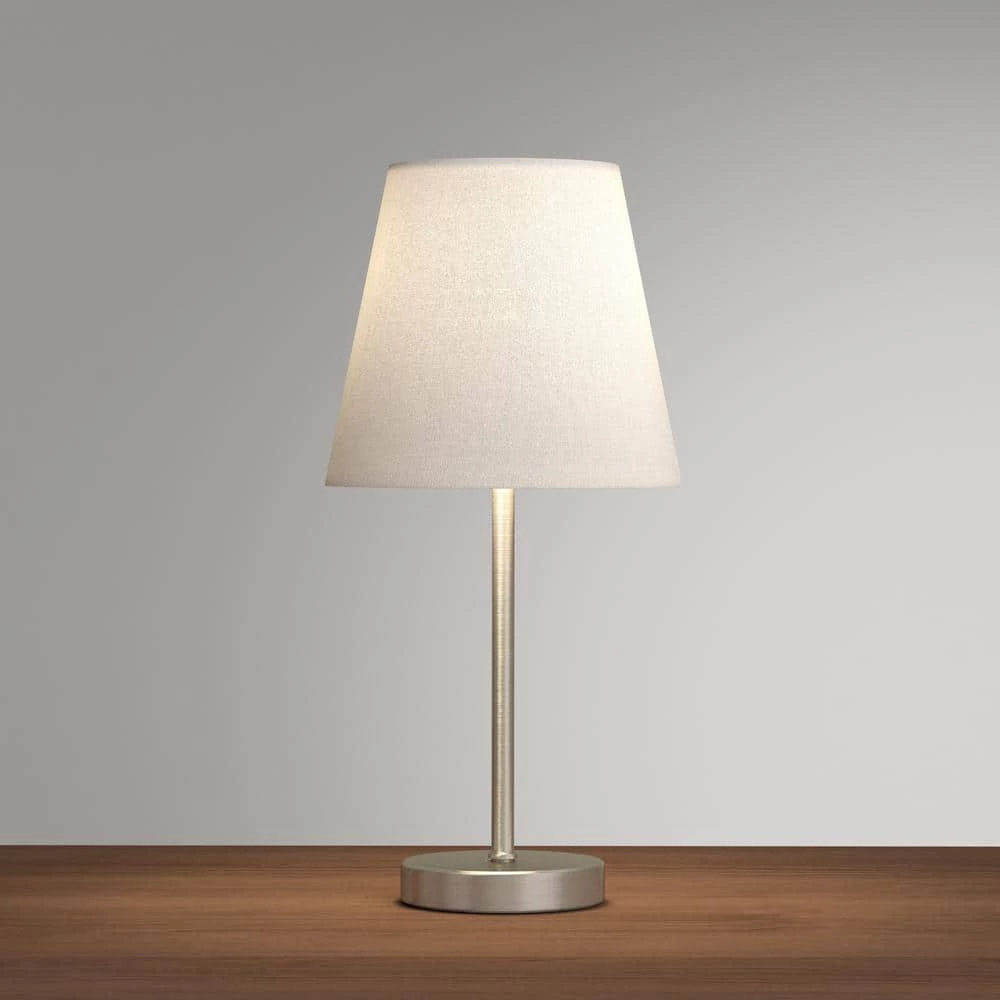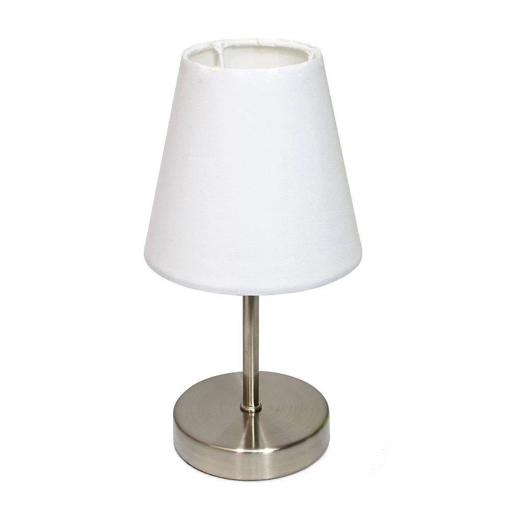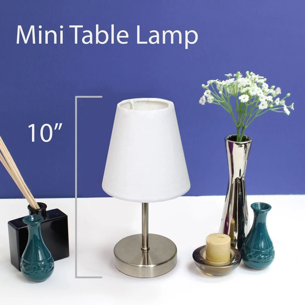 A charming, inexpensive and practical mini table lamp to meet your basic fashion lighting needs. This mini lamp features a sand nickel metal base and fabric shade. Perfect for living room, bedroom, office, kids room or college dorm.