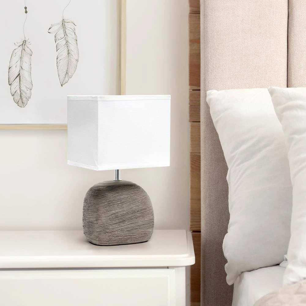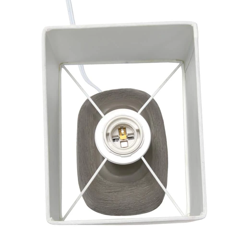 This cute and trendy table lamp is made of ceramic and topped with a rectangular fabric shade. This light is ideal for anyone seeking a neutral, yet stylish lamp for their space. The textured brown/gray base allows this lamp to match perfectly to most decor settings.