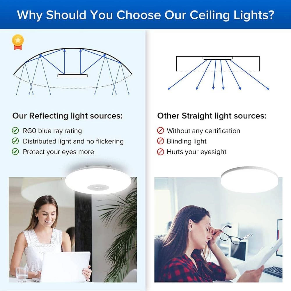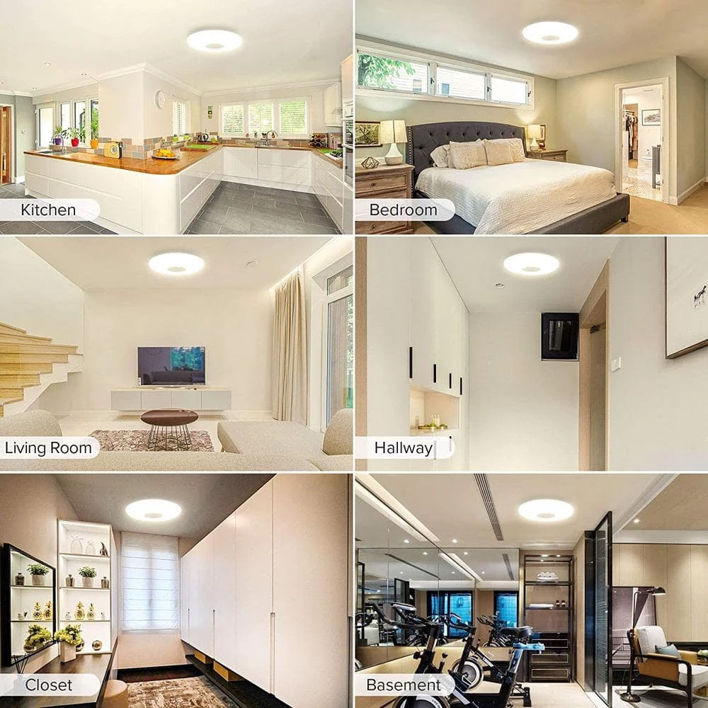 SANSI’s integrated LED Flush Mount Ceiling Light is perfect for kitchens, closets, stairwells, dining rooms, Exhibition halls, dark hallways, bedrooms, basements, entryways, porches, laundry rooms and farmhouses, etc. The ivory white plastic housing and qualified LEDs realize the evenly distributed light, keeping your eyes free from the harsh glare of traditional fluorescent tube lighting. Instant on, RG0 zero blue light hazard. The appearance is elegant, neat and concise, for different light decorations.