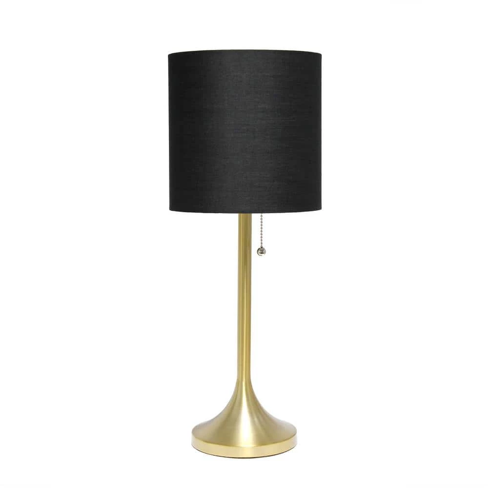 This fun and fashionable lamp features a gold metal base and black fabric drum shade making it the perfect addition to your lighting needs. This lamp will add simplicity and style to any space in your home. Perfect for bedrooms, kids and teens, college dorms, nurseries or fun offices.