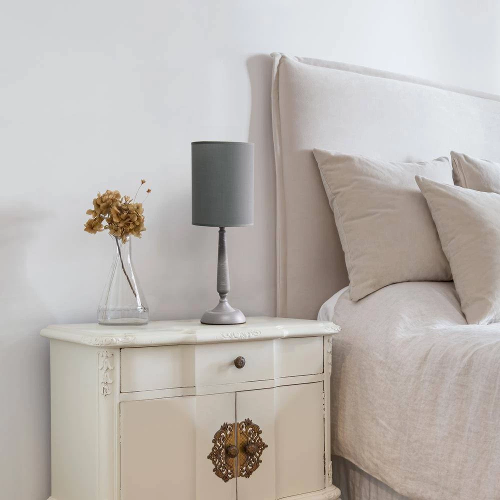 Traditionally crafted of metal, this tall stick lamp measures slightly over 20 in. H. Paired with a fabric drum shade, this lamp is sold in a number of base/shade matching color options. Lamps like this are perfectly suited to illuminate your space without drawing too much attention for those who prefer subtle accents in your decor.