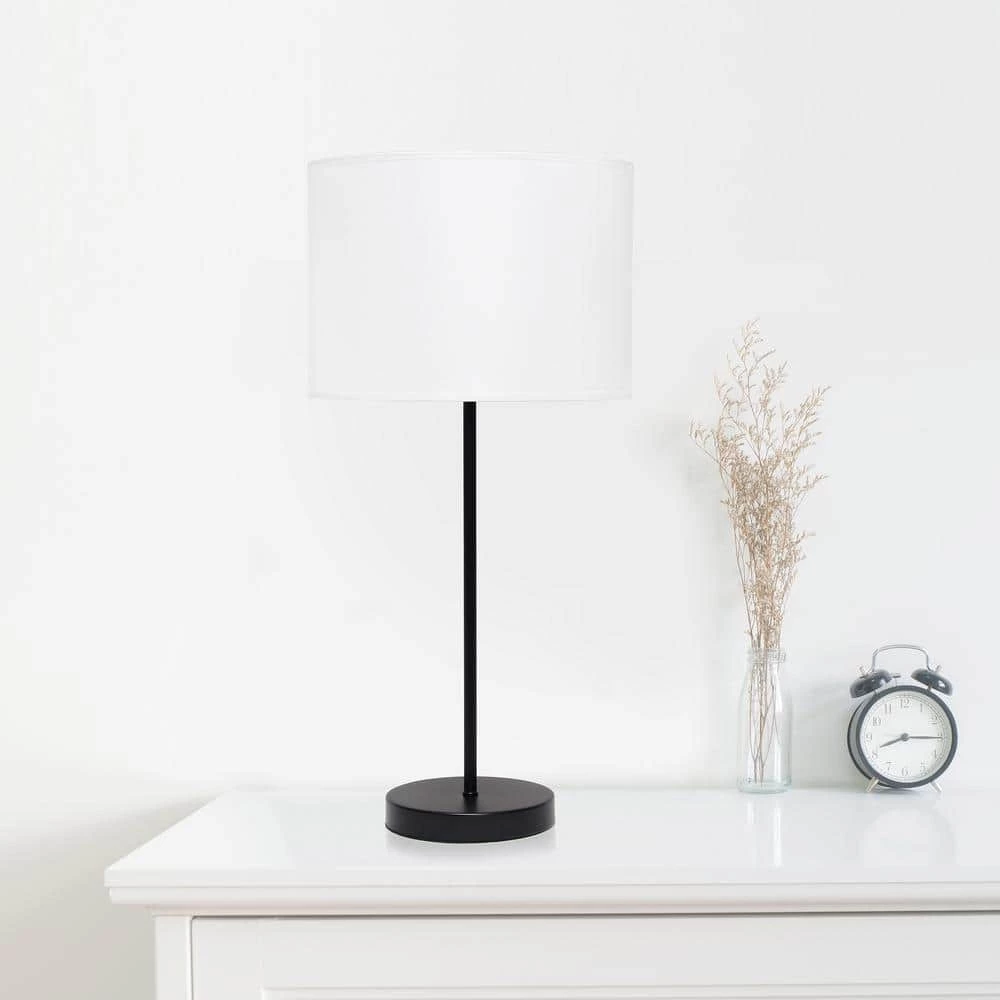 This contemporary stick lamp features a black base and a fabric drum shade. This lamp will add a modern touch to any space. Perfect for living room, bedroom, dorm, office, or anywhere you need to add fashion lighting.