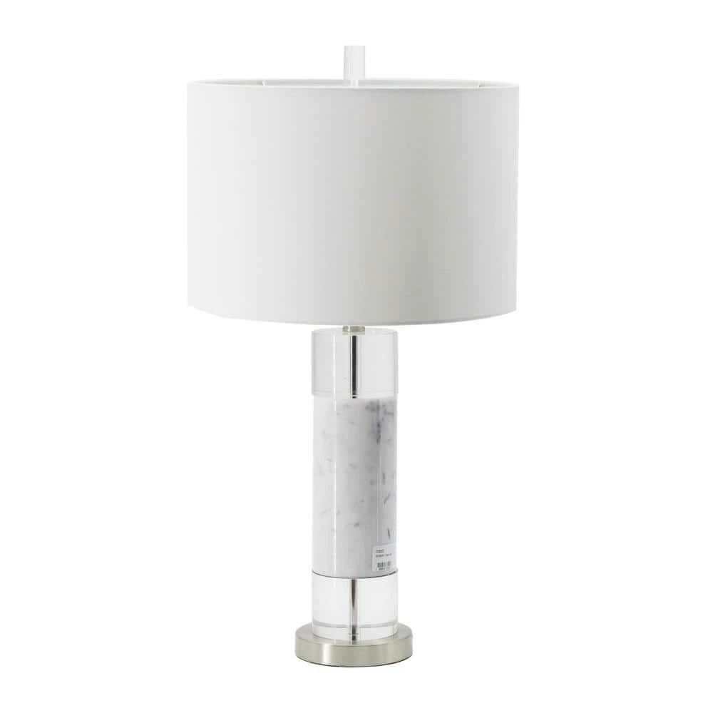 This single marble and acrylic table lamp uses a set of cylinders to create a lightweight modern profile. By using a white marble piece with a clear accent and round base, this lamp takes simple forms and gives them an elegant new direction, one that attracts the eye and enhances decor. Add its white drum shade and you have the ideal look for living rooms, bedrooms, and more.