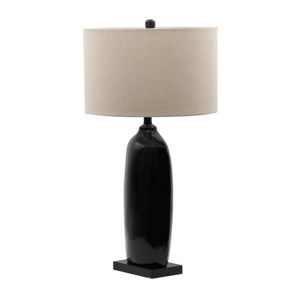 This elegant bottle table lamp is made from black glass with a rectangular base to enhance the stripped down sophistication of the contemporary home. Paired with its sand tone oval shade, it touches on design traditions from the mid-century onward, creating a complete look that’s ideal for sofa sides, bedrooms, and more. It’s a smart way to punch up decor without overpowering minimalist spaces.