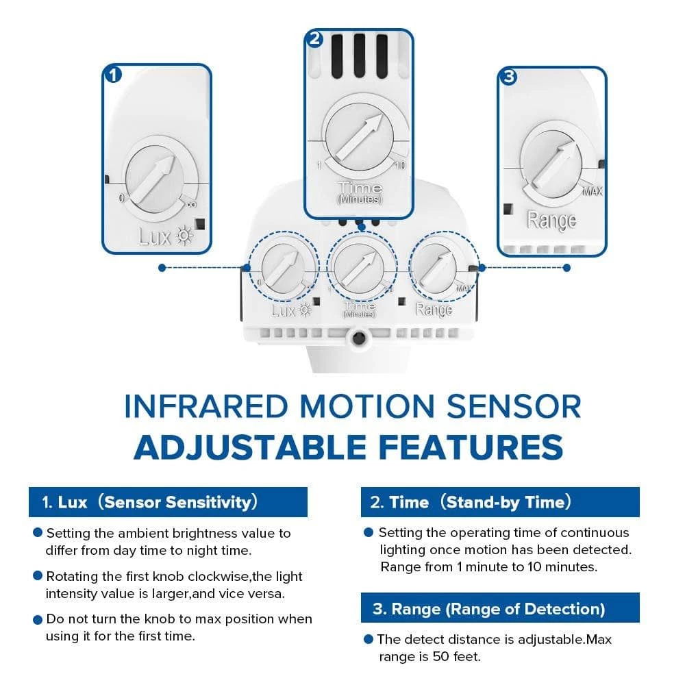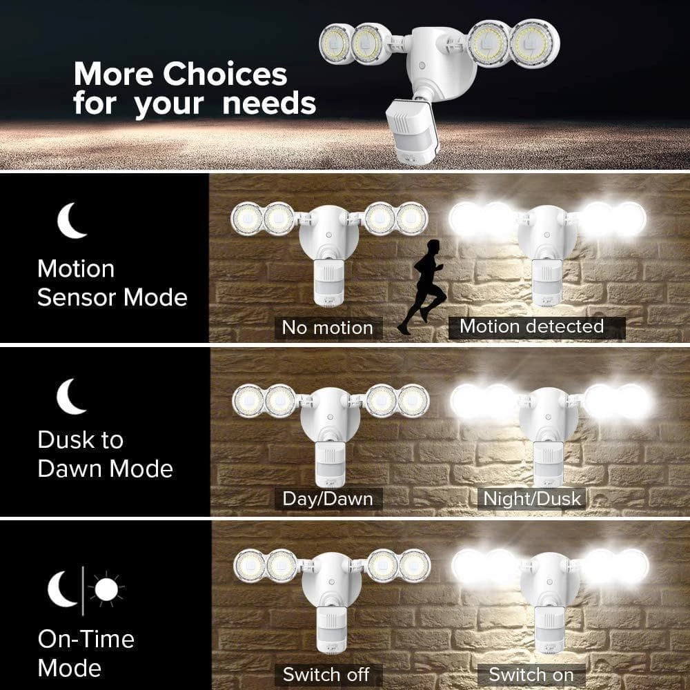 - LED motion sensor light support 4-working modes: auto mode, on time mode, dusk to dawn mode and test mode to meet your different needs