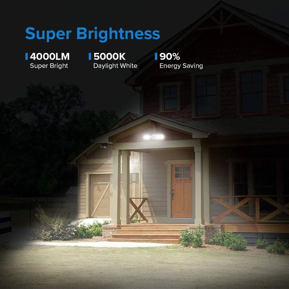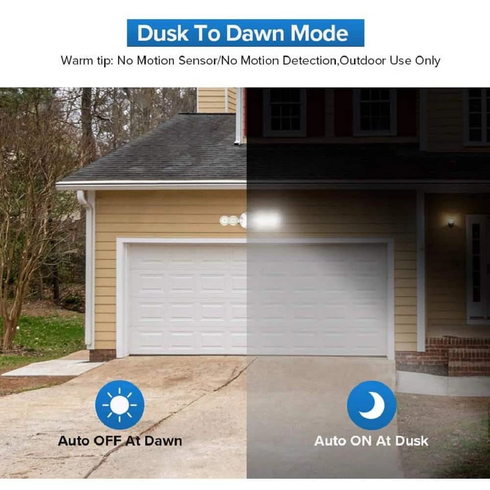 The 30-Watt security light can produce up to 4000 Lumens ultra bright 5000K daylight, using exclusive lens sealing technology to ensure a focused and brighter output. Each 30W LED security light can save 90% on lighting electricity bills. Built-in dusk to dawn photocell sensor, the dusk to dawn outdoor lighting will automatically light up at dusk, then turn off at dawn.