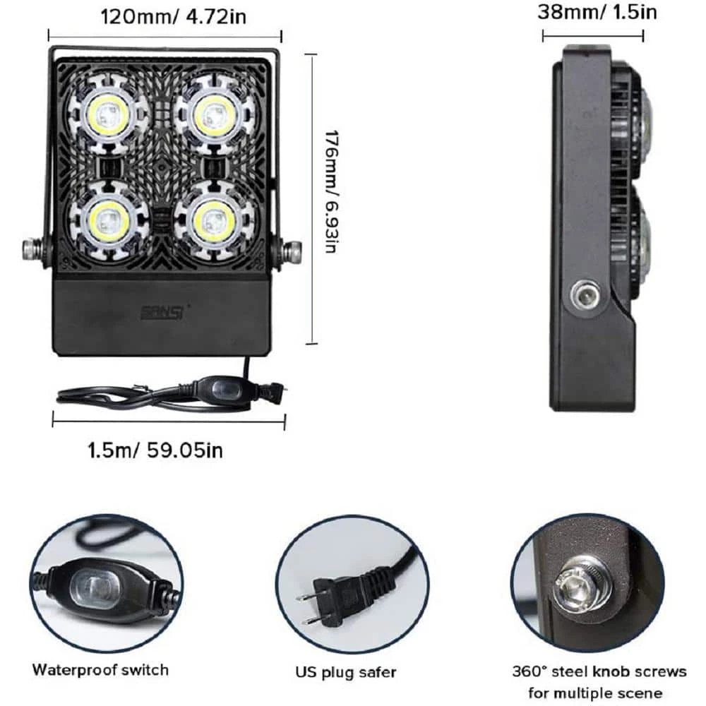 Replacing 200-Watt traditional incandescent light with a 30-Watt LED. Apply the best and brightest lighting to your area with an incredible minimum of 100 Lumens/Watt and 5700K daylight. With 120° beam angle, it can illuminate the darker corners of your workspace. IP66 waterproof rating ensures that your LED outdoor flood light won’t give in to the elements. No matter the weather, the SANSI LED floodlight can handle it. Adopting high-quality PC shell that is flame retardant, if there is a fire, the light won’t burn.