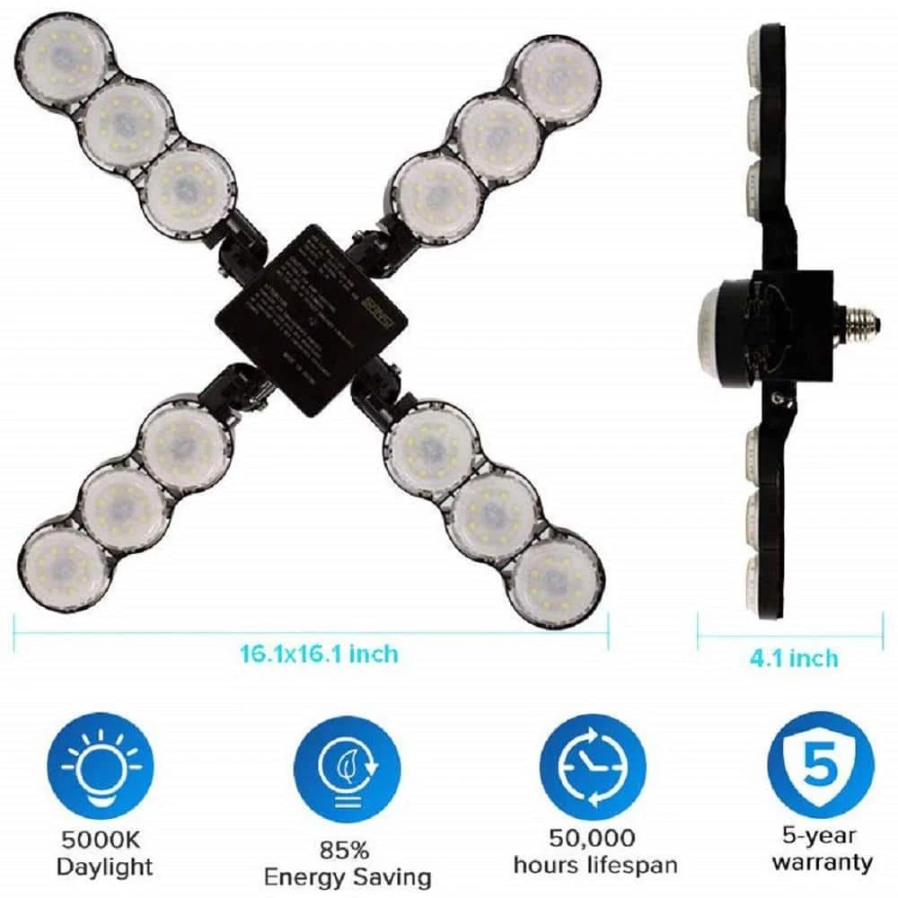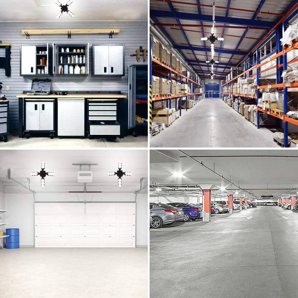 - 4 ceramic LED panels ensure a widely 360° illuminated area, which will meet your different needs, suitable for garages, barns, warehouses, farmhouses, parking lots, workshops etc.