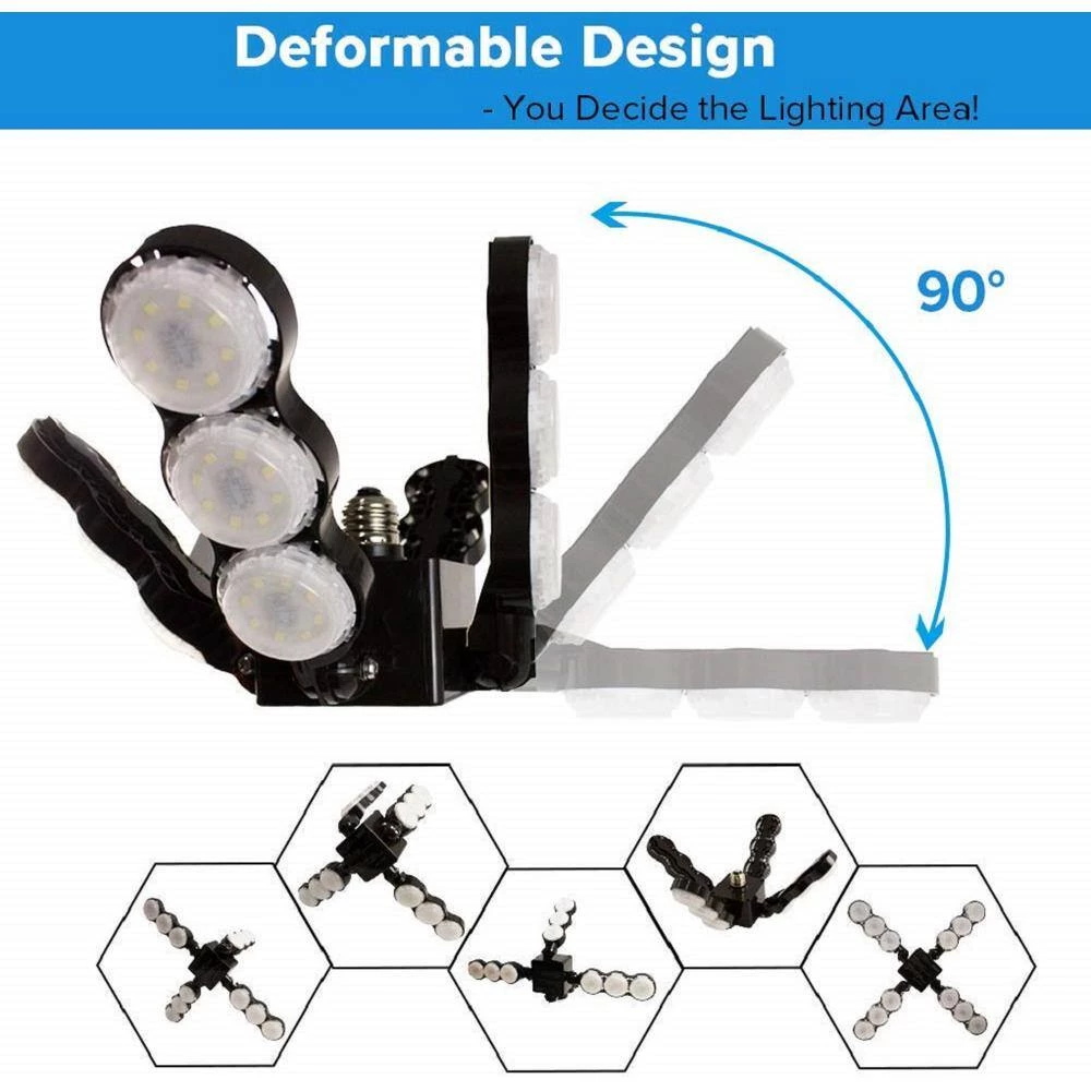 - Adjustable lighting area: this 60-Watt LED ceiling light with its deformable design, each of the panels can be folded up 90°, you can decide the light direction and adjust the range of the lighting
