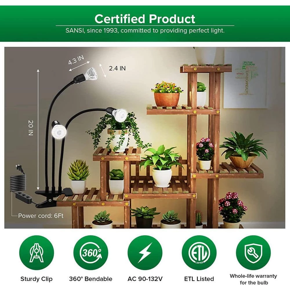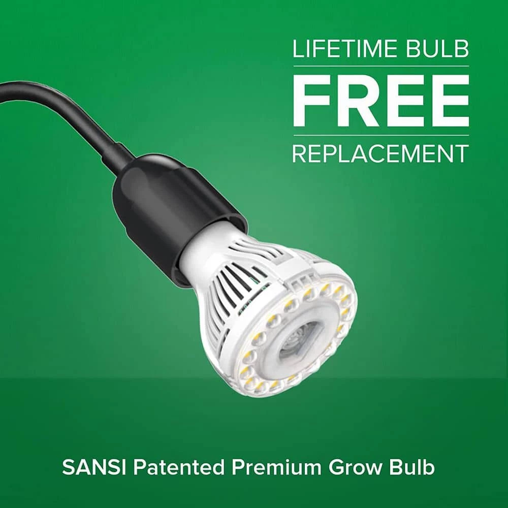 360° Gooseneck and Full Spectrum: Makes every plant covered by 360° surrounding light, actualizes a more ideal full life cycle full spectrum supplementary light program, covering the entire visible spectrum of 400 nm to 780 nm, suitable for every cycle of plant growth, effectively promote plant growth and improves crop yield and quality. Providing 4000K daylight, color rendering index Ra is close to 100, infinitely close to natural light. Chip on Ceramic, SANSI’s patented technology replaces the traditional Mcpcb aluminum substrate with a non-conductive ceramic heat sink and directly solder the LED chip on the ceramic heat sink, effectively reducing the systematic thermal resistance between the LED PN junction and the surface of the heat sink, resulting in faster heat conduction and higher product reliability, producing a SANSI bulb with higher light efficiency.