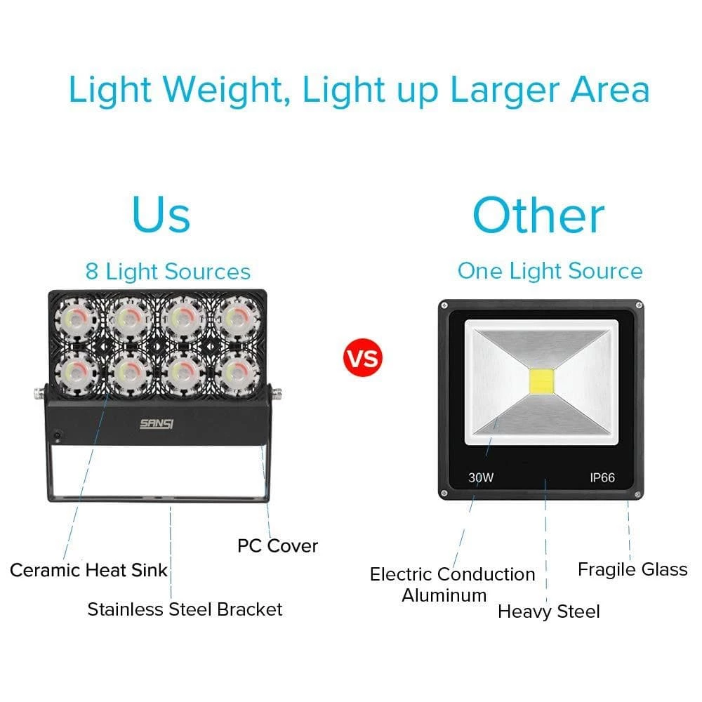 - IP65 waterproof: in order to provide better waterproof effect, SANSI invents exclusive techniques, there is no circuit exposed outside, much safer to use in rainy and snowy days