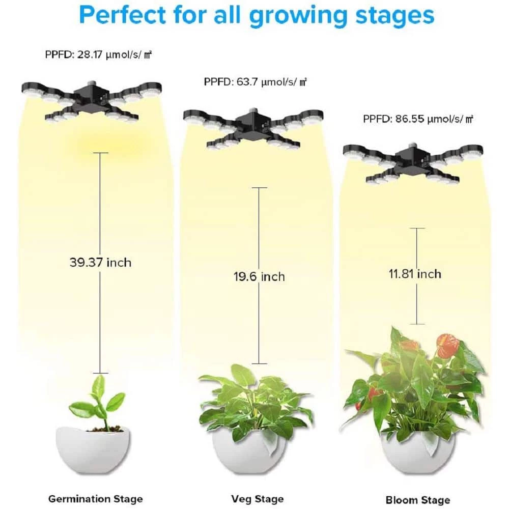 - 60-Watt LED plant light with its deformable design, each of the panels can be folded up 90°, you can decide the light direction and adjust the range of the lighting