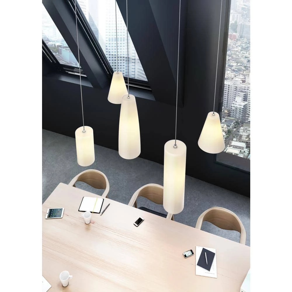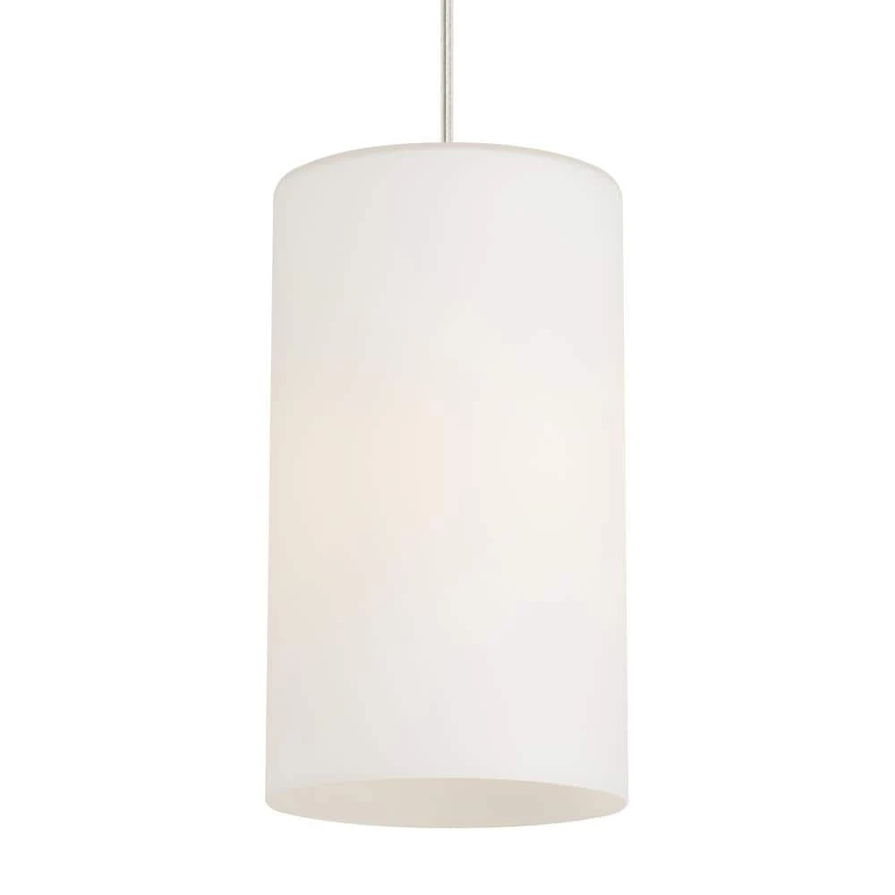 Enhance your home interior with this Mati one-light pendant. Great for living rooms, kitchens and more, it offers a matte white finish, a cylinder etched glass shade and a satin nickel canopy, creating a modern look. This dimmable fixture comes with 10 ft. of field-cuttable cable for customization.