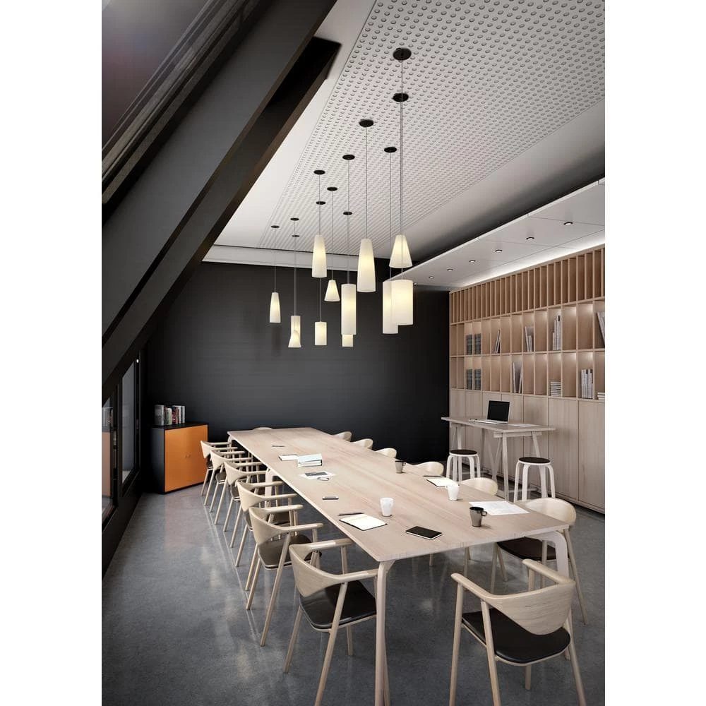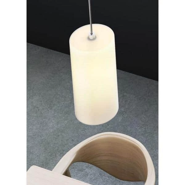 - Cylindrical pendant made of hand-blown glass, opaque white or clear smoke