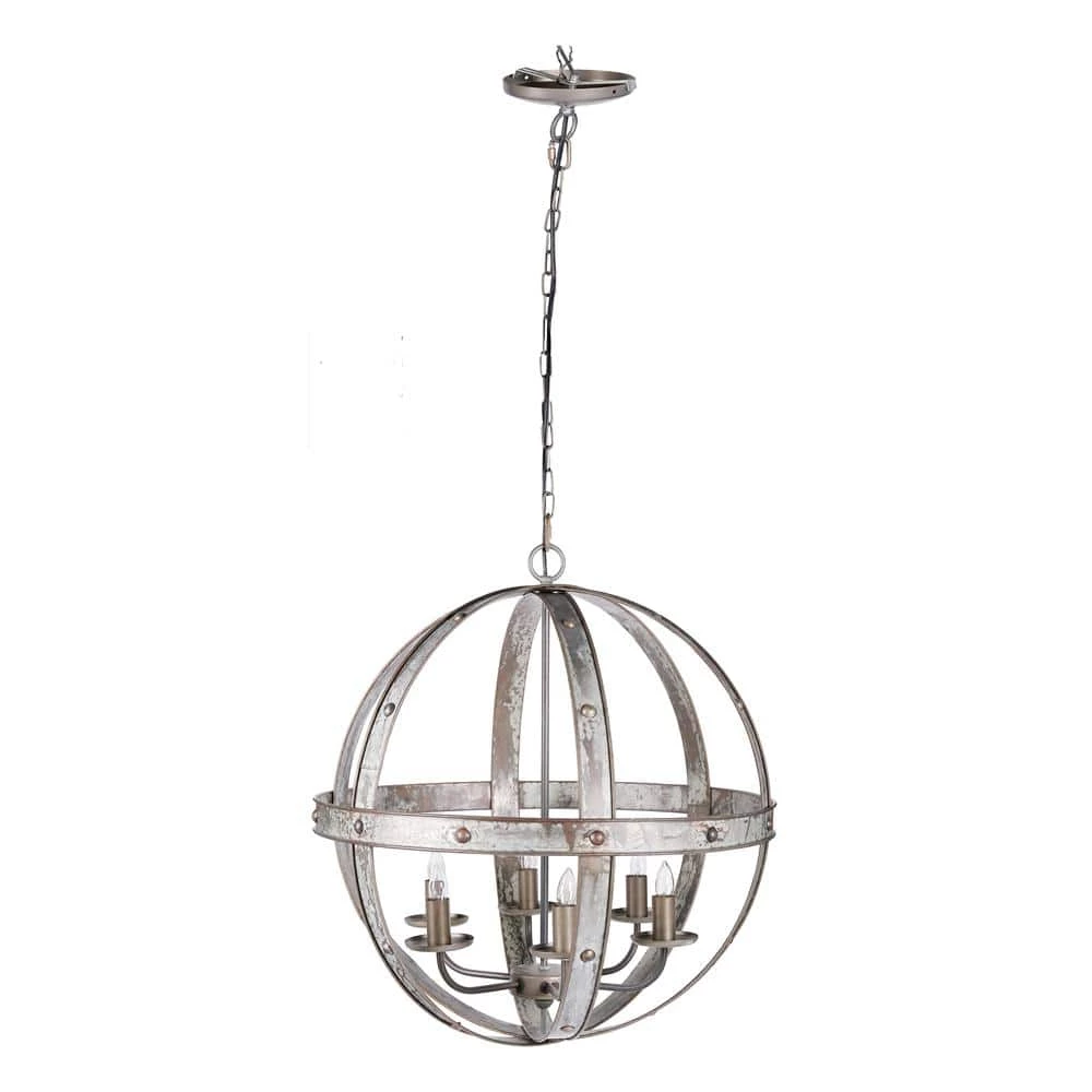 With its antique silver finish, open globe design, and a subtle gleam, the Ordway Iron Sphere Six-Light Chandelier from the Southern Living Collection adds a graceful-yet-industrial style to any space. Hang in a foyer, farmhouse kitchen, or urban loft apartment for a timeless yet robust look. Constructed from iron, the Ordway Chandelier offers a rugged elegance plus long-lasting durability.