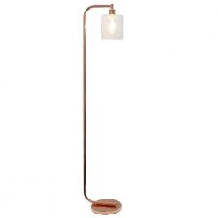 63 in. Rose Gold Antique Style Industrial Iron Lantern Floor Lamp with Glass Shade by Simple Designs