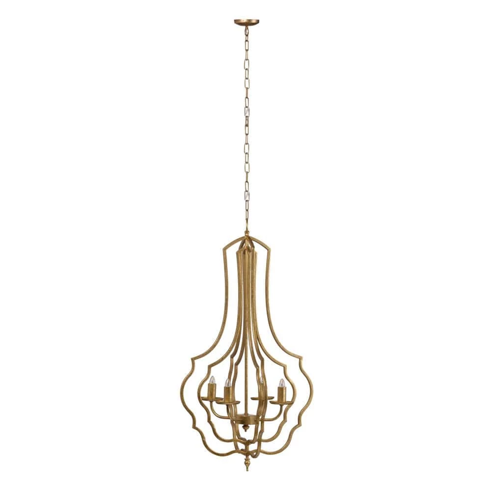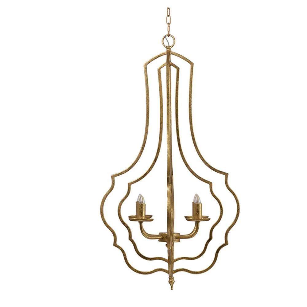 Brighten your interior with the exceptionally graceful Valerio Nested Chandelier. The sculptural metal frame makes a dramatic statement with its curves, angles, and antique gold finish. Outfit with four candelabra-style bulbs and hang anywhere that could use an elegant focal point.
